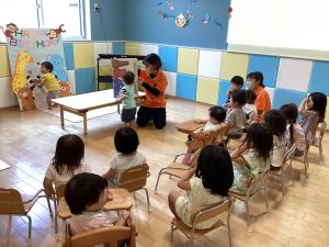 今回は大型絵本だったので、大画面の迫力に大喜びの子ども達でした!