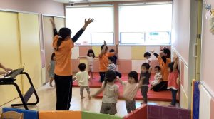 室内で過ごす時間が多くなっていますが、子ども達はカリキュラムの英語や体操、リトミックなどを楽しみながら、