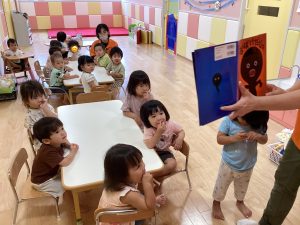 迫力あるおばけに、中では手で追い払おうとしたり、思わず顔を伏せたりと、怖がる子どもたち…。