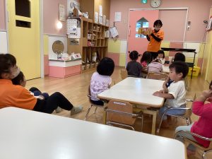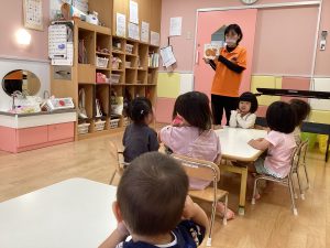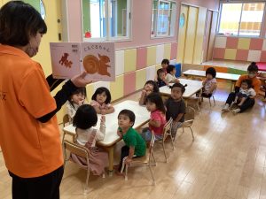 とっても可愛い絵のリスやどんぐりが出てくる楽しい絵本なので子どもたちは「どんぐりー!」「お口いっぱいだねー」「しっぽにもどんぐりー!」と声を出しながら見ていますよ![]()