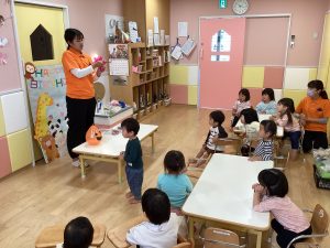 10月は0歳児もも組さんのお友だちの1歳のお誕生日をみんなでお祝いしました🎊