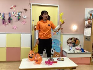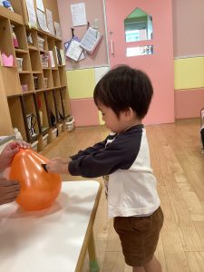 子どもたちで風船に目や鼻や口をつけて、ハロウィンのカボチャおばけとアンパンマンができました😊