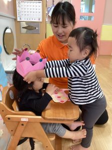 1、2歳児のお友だちから、冠やメッセージカードとたくさんの「おめでとう!」の拍手があり、みんな楽しく、嬉しい誕生会となりました🎉