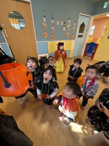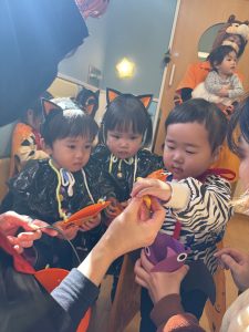 次の日も「昨日ハロウィンしたねー!」「ママとお菓子食べたよ!」とたくさんお話を聞かせてくれた子ども達でした![]()