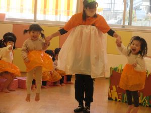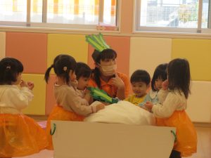 りんご組は6名で「大きなかぶ」のお話遊びをしました![]()