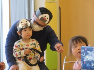 もも組は4名のお友だちで、アンパンマンと一緒にサーキットの冒険へ出発しました![]()