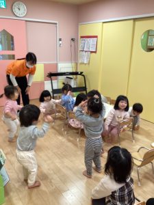 英語の歌『あたま、かた、ひざ、ぽん ~Head Shoulders Knees and Toes~』をみんなでしました☺︎