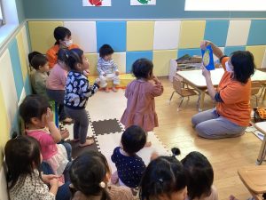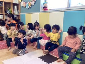 0歳児、1歳児、2歳児合同で行っているリトミックですが、年齢ごとにねらいが設定されています♬