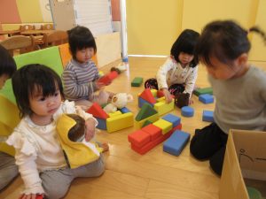 お友だちと一緒のものを作ったり、お家を作ったりと、世界がひろがって行きますね![]()