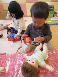 ぬいぐるみやぽぽちゃん人形のお世話をしたり…