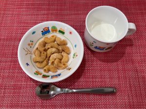 今日のおやつは、マカロニあべかわです。保育園では定番のおやつです。子どもたちは「おいしい♡」とニコニコ笑顔で食べてくれていました。
