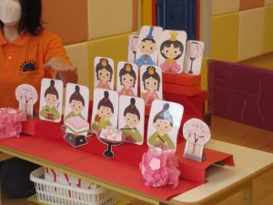 お部屋に雛飾りが登場すると、とても嬉しそうな子どもたち🧒「これは誰ー?」「かわいいねー」とお友だちとお話をしながら雛飾りをじーっと見つめていましたよ👀