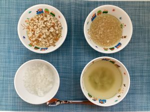 (写真は離乳食後期です。年齢によって盛り付け量を変えて提供しています。)