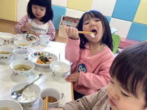 大喜びでお箸を手にした子ども達、よく見るといろんな持ち方をしています👀‼️