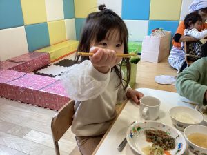 2歳児りんご組では、給食の時にお箸を使っています🥢
