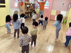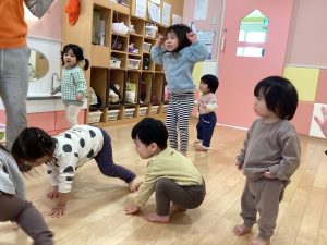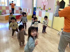 他にも、『バナナ体操』や『アンパンマン体操』などがあり、日によっていろんな曲で体操しています😊子どもたちの元気な姿を見ているとこちらも元気になりますね✨