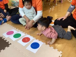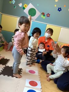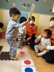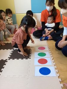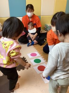 保育者が言った色を聞いて、色が描かれたカードを取るというゲームをしました🙌🏻