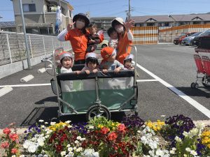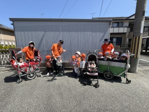 今月から入園の新しいお友だちも、初めてのバギーやベビーカーに乗って揺られ、にっこり楽しそうにしていました✨