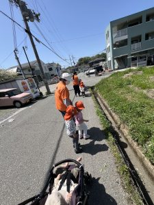 コースを知っている2歳児さんは、行く前から「今日はワンワンに会えるかな?」など、ソワソワしており、出発が待ち遠しい様子でした!