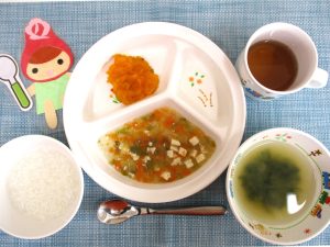 やわらかく甘い♡かぼちゃの甘煮をおかわりする子が多かったです。子どもたちは、今日もたくさん食べました!