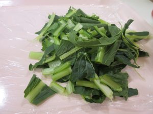 全部ちぎり終えると、トレーにいっぱいの小松菜が…🥬