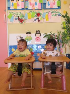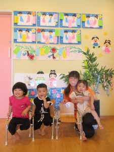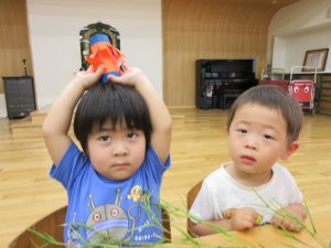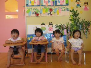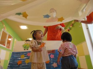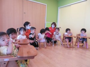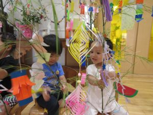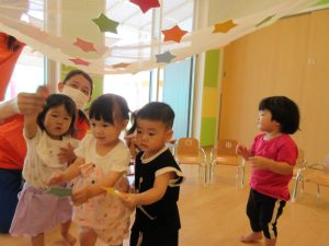 始めはみんなで「たなばたさま」を歌いました。0.1歳児だけでしたが元気いっぱいで歌えました!