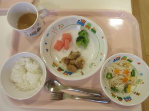 そして今日の給食は七夕を意識した献立でしたよ🌟星形のオクラが入ったそうめんをモリモリ食べていました、美味しかったね😋