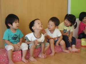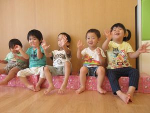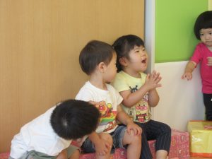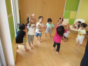 1歳児さんは、歌詞の全部を歌えなくても語尾や最後はしっかりと合わせて声を出し、これまたいい感じです😊