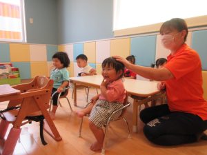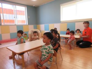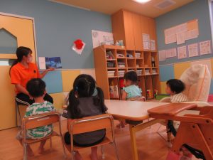 だるまさんや動物、最後はお母さんが登場しました。その影響で日頃からも「にらめっこ」をして遊んでいます。(子どもたちの可愛らしい『あっぷっぷ(変顔)』の顔は、是非保育ブログをチェックしてくださいね☆)