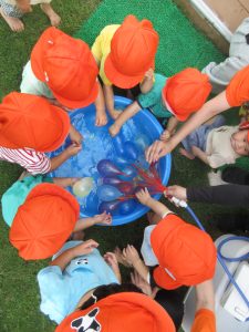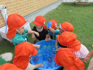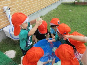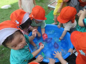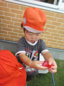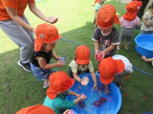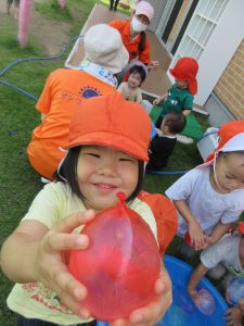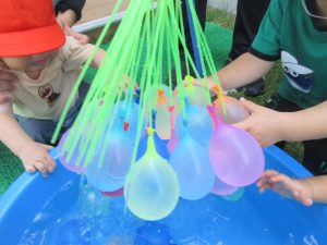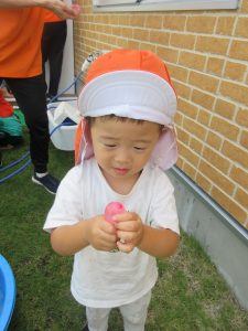 2回目、3回目と水風船を膨らませるごとに、最初は静かに見守っていた子ども達が