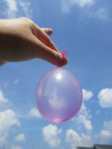 他にも、小さな穴のあいた水風船からは細い細い水がピュ〜〜〜〜〜ッ![]()