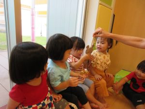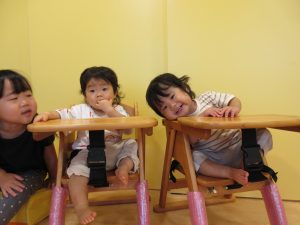 この時期は、とんぼのめがね、おおきなくりの木の下で、どんぐりころころなど、身振りや手振りをつけて楽しんでいますよ![]()