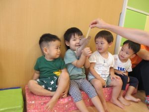 おおきなくりの木の下で、は速度を変えたり、高音や低音を取り入れることで、子ども達ノリノリで楽しんでいます⭐︎