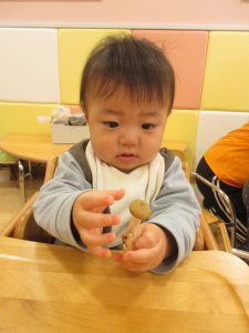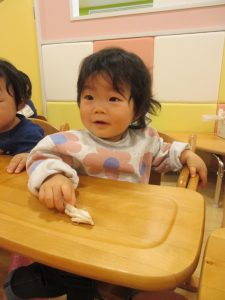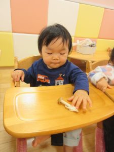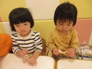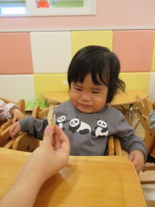 いちご組さんはつまんで持ってみたり、両手に持ってみたりし楽しんでいましたよ😊