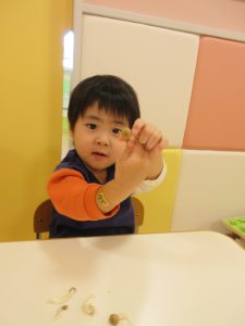 もも組さんはなかなか見ることのないぶなしめじに、早く欲しい!というかのように手を伸ばしてちょうだい!としていました😌