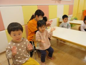 自分の名前と、2歳児なので好きな食べものや動物を教えてくれました。上手に発表できましたね!