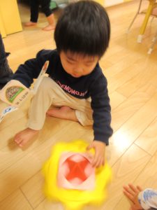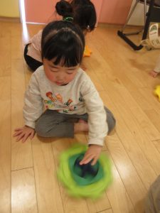 駒回しは、0歳児さん1歳児さんも仲間入りして