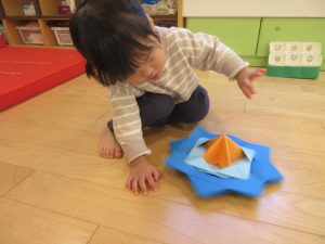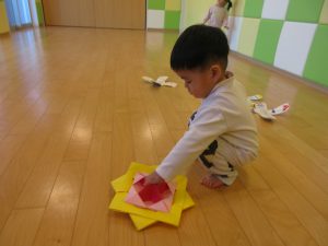 色画用紙で折った駒は、小さいお友だちでも簡単に回すことが出来て大人気💖