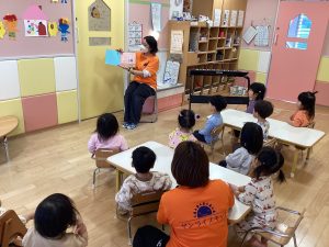 繰り返しも楽しくて、保育者の読むタイミングに合わせて「ない!」と声を揃える子どもたちです😆✨