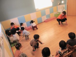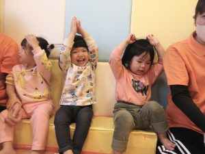 2歳児さんはカエルさん🐸になって立ったり座ったりジャンプをしたりと「動物✖️動詞」にも挑戦しました!!