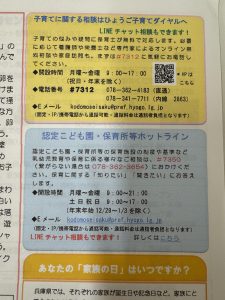 LINEで気軽に相談できる“ひょうご子育てダイヤル“というものをご存知でしょうか?子育ての悩みや疑問を保育士が答えたり、内容によっては看護師や栄養士などの専門家による無料相談や家庭訪問もあります😃
