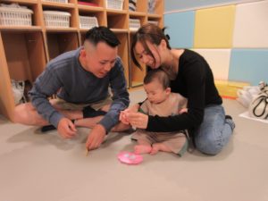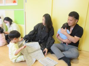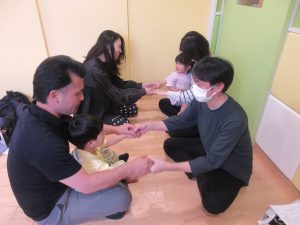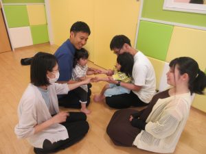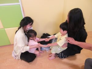 普段の生活で楽しんでいる、手遊びや歌遊び、わらべうた遊びを親子で触れ合いながら楽しんで頂きました♪