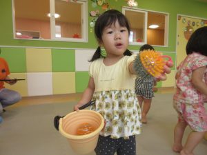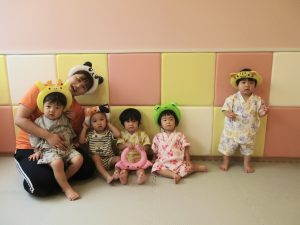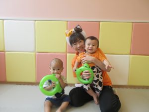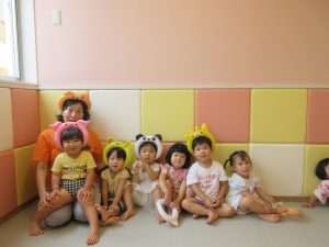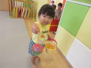 お土産にカチューシャとヨーヨーと2歳児さん特製のたこ焼きとジュースをもらい、みんなニコニコでした😊