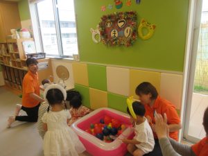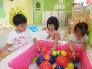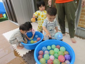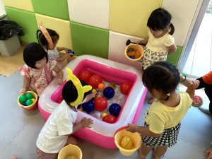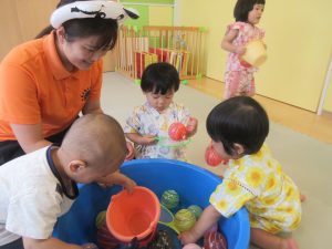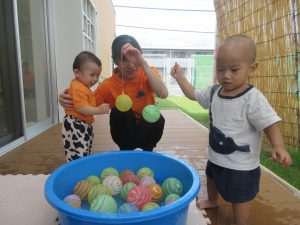 最後はテラスへ出て、水が入ったヨーヨーをびしょ濡れになりながらGETしていた子どもたちです✌️😄