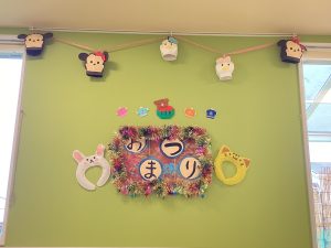 子どもたちは、いつもと違った室内の様子や🏮友だちの服装👘などを見て何かいつもと違う雰囲気にドキドキ💓