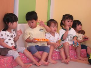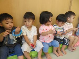 楽器を持ったリズムあそびも、リズムよく鳴らすことが出来はじめ、少しずつ楽器の使い方も分かってきているように感じます⭐︎
