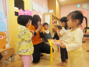 10月は、りんご組(2歳児)から1名、いちご組(1歳児)から1名の2名の誕生日をお祝いしました🎉