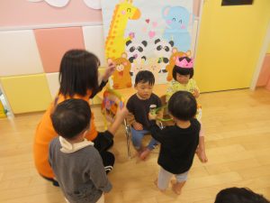 嬉しそうに、前にいるお友だちや保育者に見せてくれましたよ♩