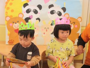 2名とも、誕生会の前から楽しみにしていたのですが、いざ前に出ると緊張で表情が固まってしまいました💦