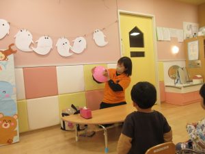『これなーに?』と聞くと、『ハロウィン!』『かぼちゃ!』と元気な声が聞こえてきました👂